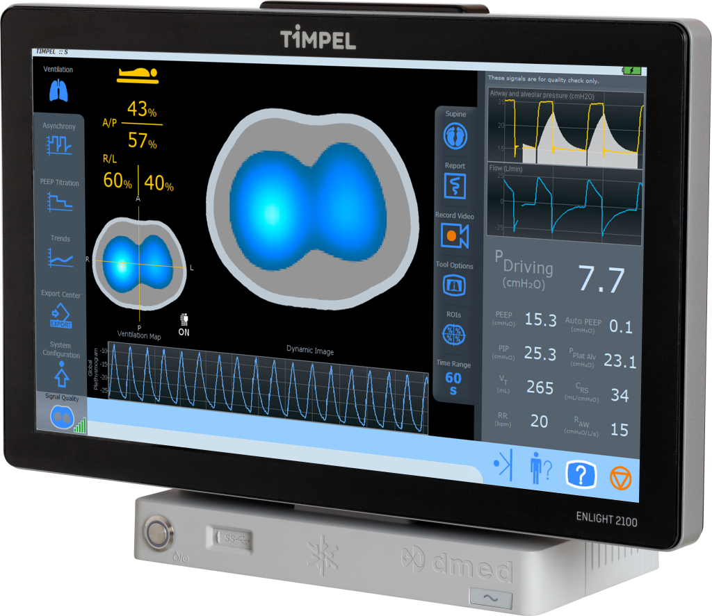 Enlight 2100 ENLIGHT 2100 is a bedside Electrical Impedance Tomograph (EIT) that provides clear, real-time and intuitive images of the regional distribution of ventilation of neonatal, pediatric and adult patients, allowing the assessment of regional lung volume changes.
