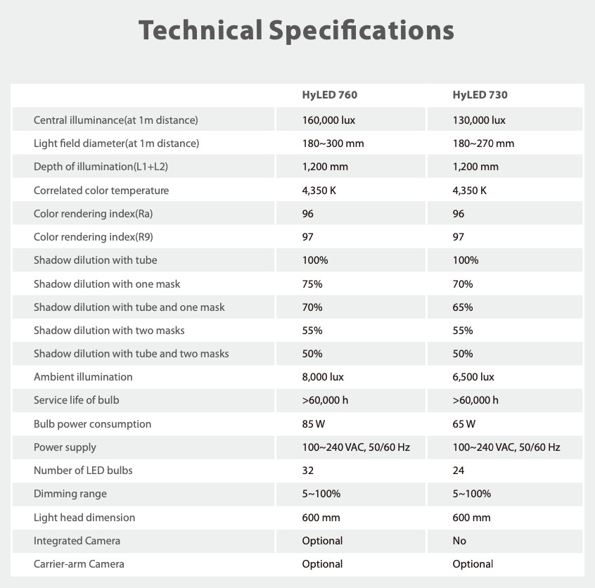 HyLED 700 Series (HyLED 760/ HyLED 730) The matrix is comprised of several delicately placed sections, each with a certain number of individual converging lenses. In this arrangement, each lens produces its own light field, and all the light fields overlap to produce the overall light field.