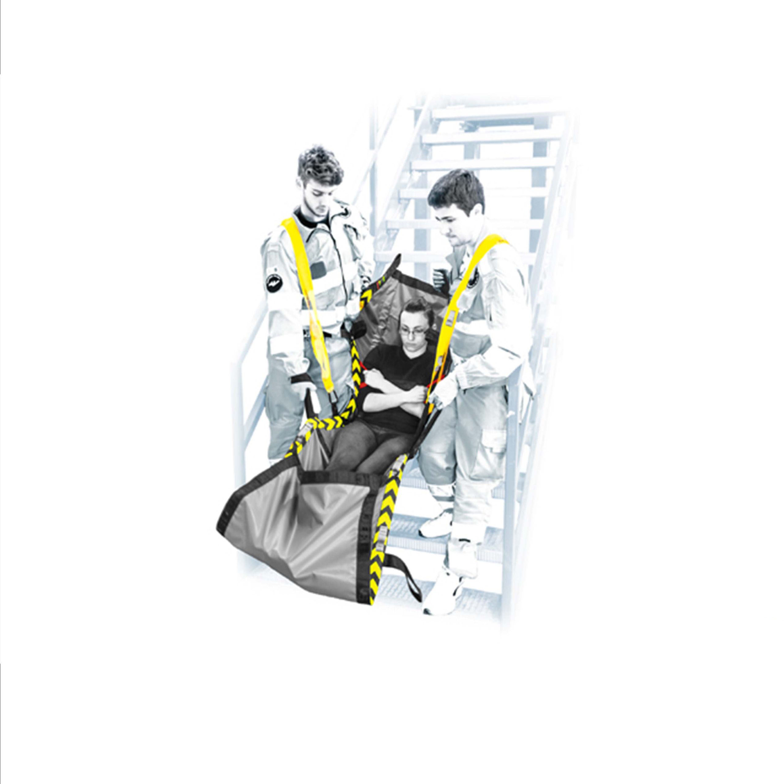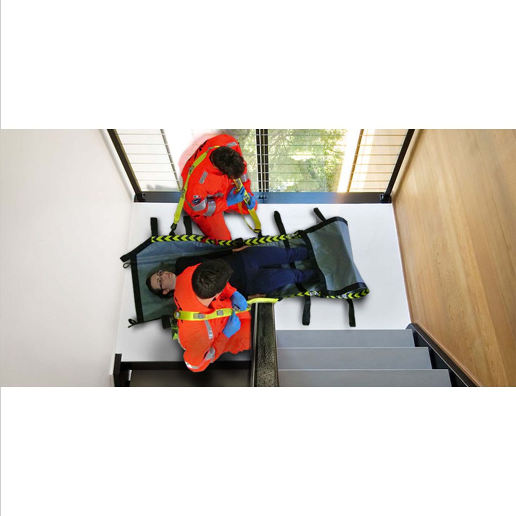 Đối với những bệnh nhân không có dấu hiệu chấn thương cột sống, WOW là giải pháp tốt nhất để đi xuống cầu thang khi trong không gian chật chội. Chỉ cần 2 người vận hành. Cấu trúc dạng tấm giúp phân bổ tải trọng đều trên bề mặt lớn.